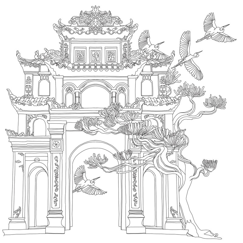 With this magical colouring book, French artist Inès Carratié invites you to accompany her on her journey through Asia. Her motifs show gardens with cherry blossoms and peonies, ponds with water lilies, pools with koi carp, tigers in the bamboo forest, but also landscapes with pagodas and a monastery on the mountain.