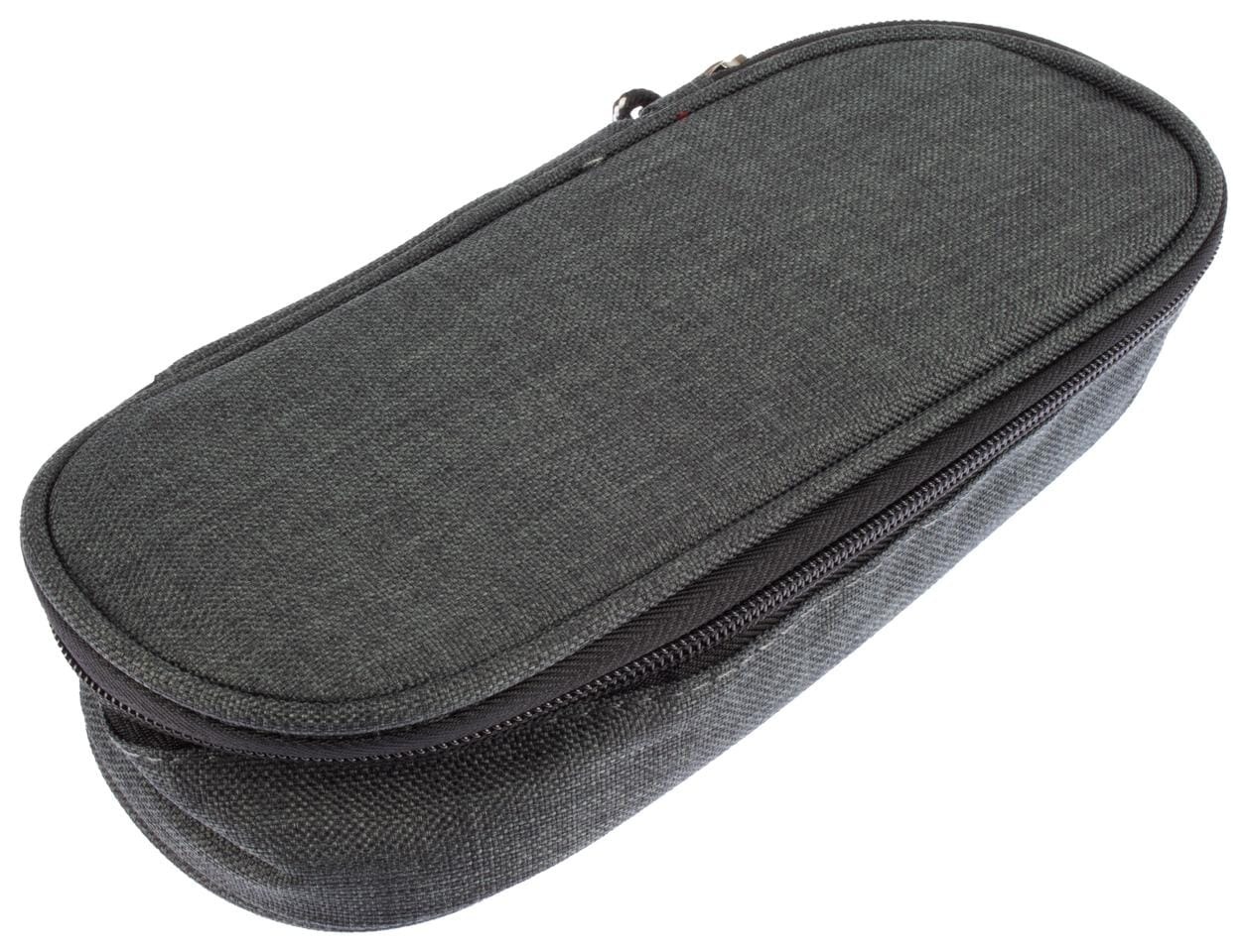 This oval pen pouch has a zipper pocket, 4 pen loops and plenty of space for other things. Size approx. 22 X 5 X 9 cm.