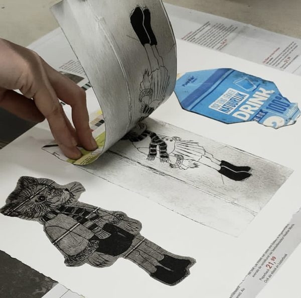 Etching with Tetrapak as a substrate is a fun new printing technique that allows you to create surprisingly contemporary art. It is a variation on etching with metal plate, but this technique does not require corrosive acid, and solvents have been replaced by less harmful alternatives. In short: you make a drawing on Tetrapak (the inside of beverage cartons), rub it with etching ink and print it on paper.