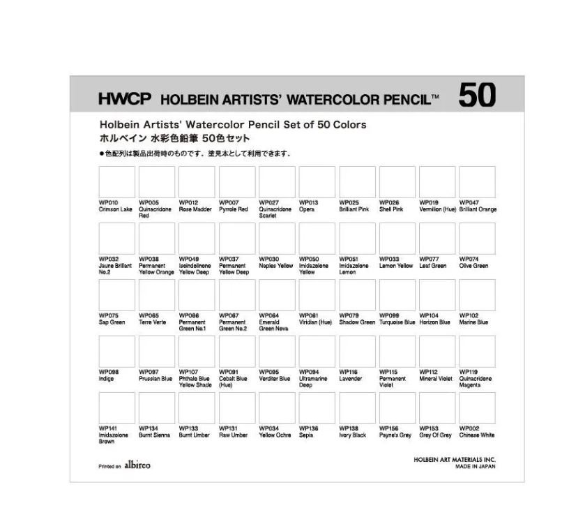 Holbein watercolour pencils are water-soluble, artist-quality coloured pencils designed for artists seeking superior and enhanced results when drawing. The 50 exceptional colours provide a smooth and uniform feel and are highly soluble in water.