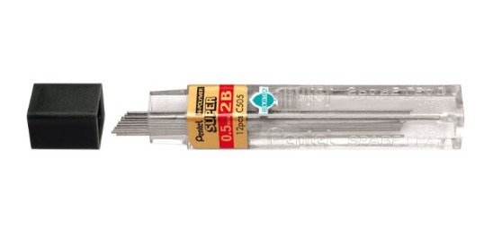 These 2B mechanical pencil leads from Pentel have a thickness of 0.5 mm. With these refills, you can use your mechanical pencil for writing, sketching, or drawing.
