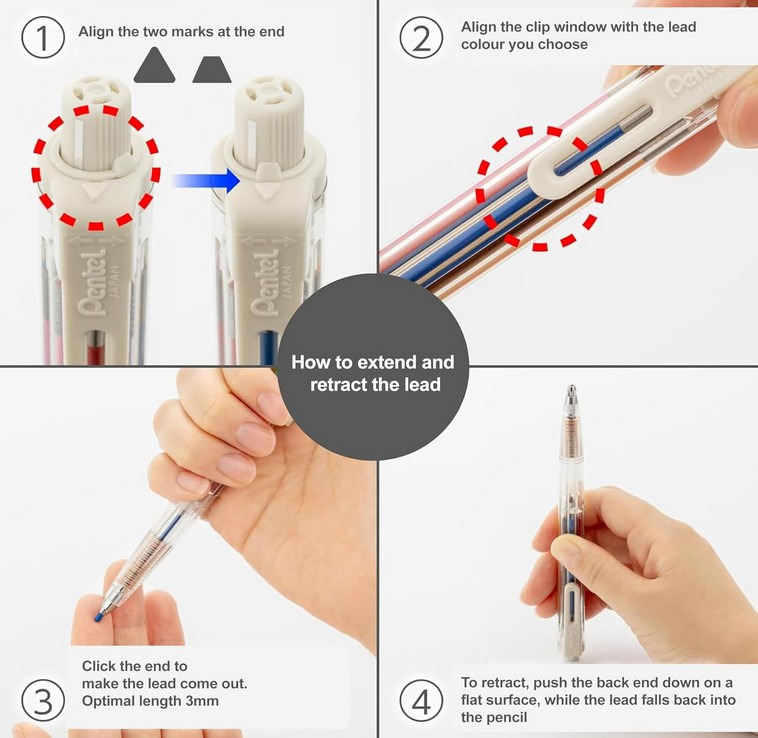 De Pentel Multi 8 is een vulpotlood met 8 verschillende potloodstiften. Selecteer met de draaibare clip de juiste kleur en klik op de knop om deze los te laten. Bevat 8 gekleurde vullingen in de kleuren: rood, blauw, bruin, oranje, geel, lichtgroen, lichtblauw en roze. Perfect voor ontwerpen en illustreren. Lijndikte 2 mm.