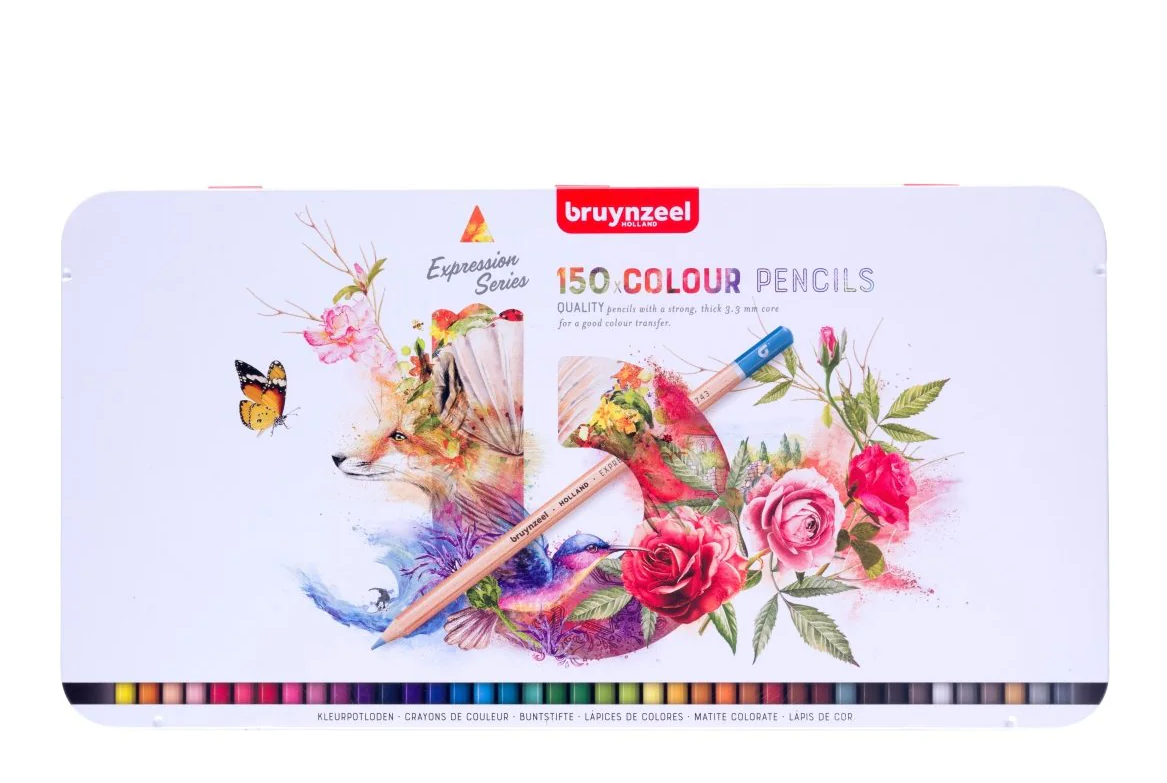 Bruynzeel 150 high-quality coloured pencils with a strong, thick 3.3 mm lead, made with high-quality pigments for excellent colour payoff. Features: excellent colour rendering, high-quality pigments, vibrant colours, lead double-glued to the wood. Gluten-free.