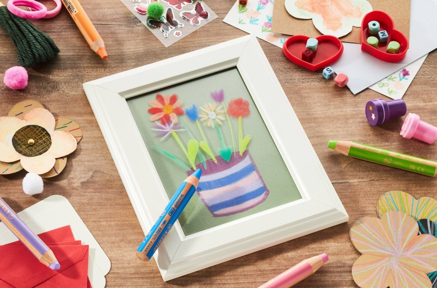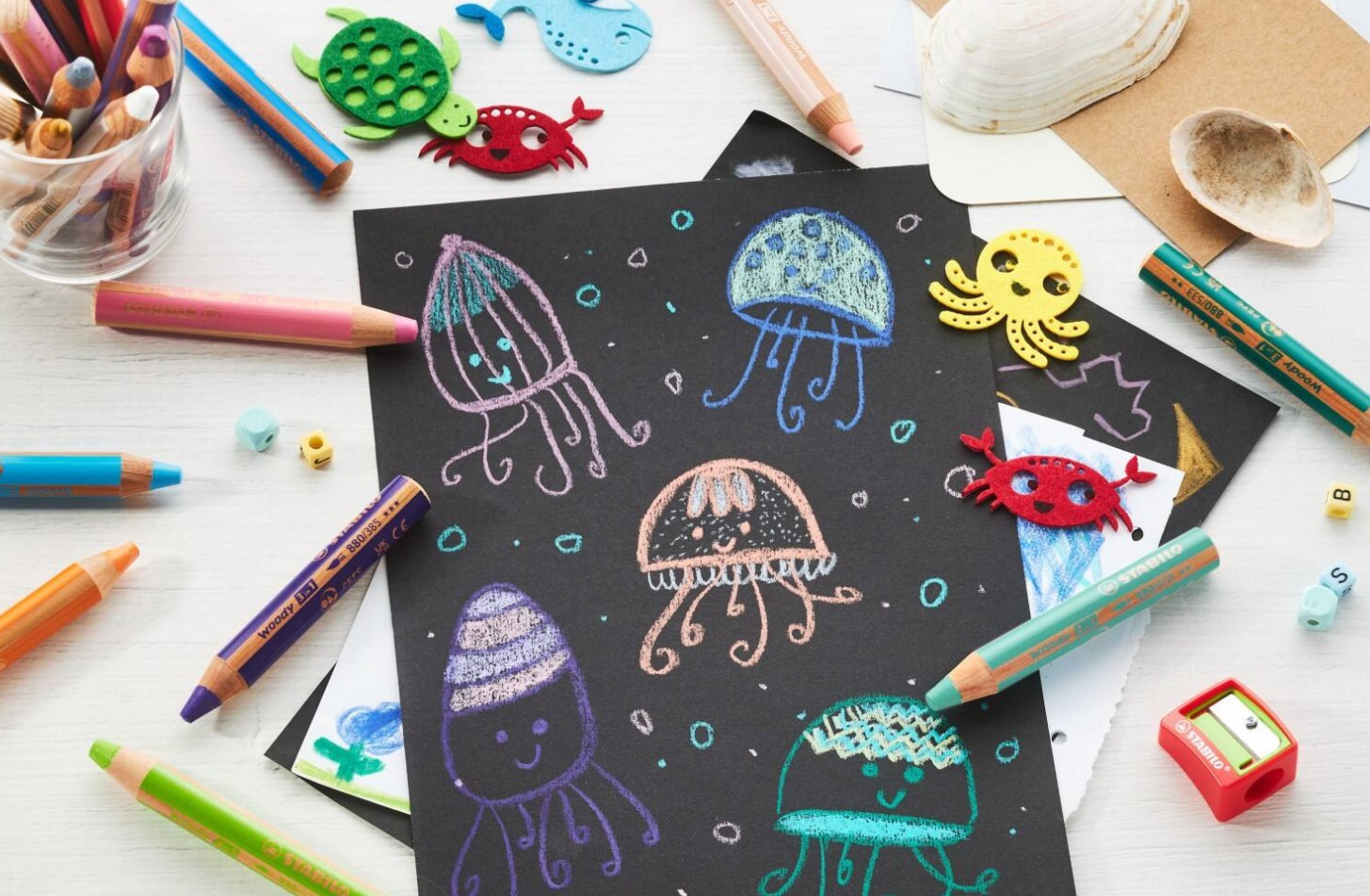 The Woody 3-in-1 is a coloured pencil, crayon and watercolour pencil all in one. It can be used to colour on paper and card (even on black paper!) as well as on smooth surfaces, such as windows, plastic, wellies, lunch boxes – you name it. With a brush and some water, you can create beautiful works of