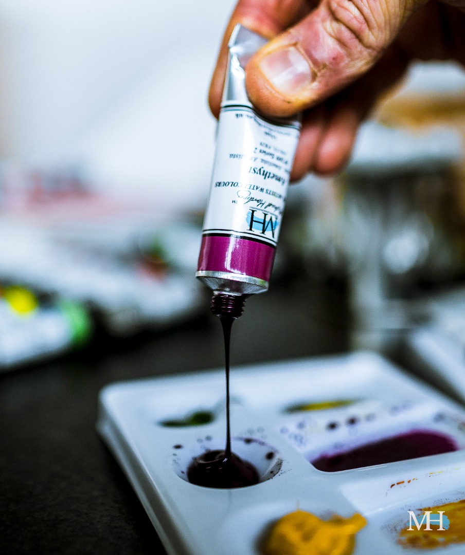 Je kunt een kleur natuurlijk subtiel maken met mengkleuren, maar je kunt de kracht van een kleur niet vergroten. Daarom zijn de aquarellen van Michael Harding zo bijzonder: ze geven je volle, rijke, pigmentrijke kleuren. Zo kun je zelf beslissen of je ze zo gebruikt of dat je ze subtieler maakt door ze met elkaar te mengen.
