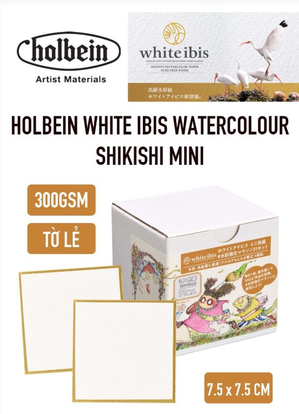Holbein's White Ibis watercolor paper is made from 80% high-quality cotton in a high-quality cellulose pulp. With a high weight of 300 g/m², it is dedicated to watercolor painting and all wet techniques such as ink, gouache, acrylic, and markers.