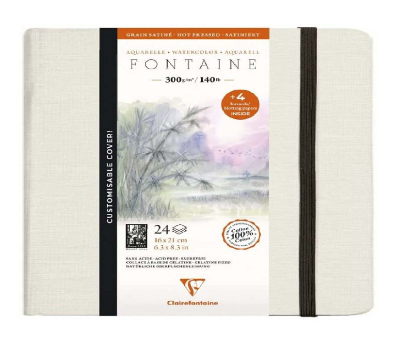 A beautiful satin watercolour book, hot pressed, with a smooth texture, suitable for detailed and precise watercolours.
