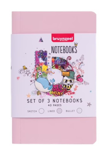 Laat je creativiteit sprankelen met de Bruynzeel notitieboek set van 3. Deze set bestaat uit drie compacte notitieboekjes in lila, felroze en lichtroze. Elk boekje heeft een kaft met een subtiel glittertje dat zorgt voor een vrolijke en speelse uitstraling. De set bevat een schetsboek, een gelinieerd notitieboek en een gestippeld dagboek. Zo heb je altijd het juiste boekje bij de hand, of je nu wilt tekenen, schrijven of plannen. Elk boekje telt 40 pagina’s en biedt voldoende ruimte voor ideeën, krabbels en notities. Dankzij het handzame formaat neem je ze eenvoudig mee naar school, werk of onderweg. Ook leuk als cadeau voor iedereen die graag creatief bezig is.