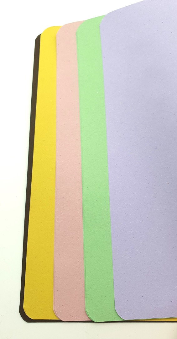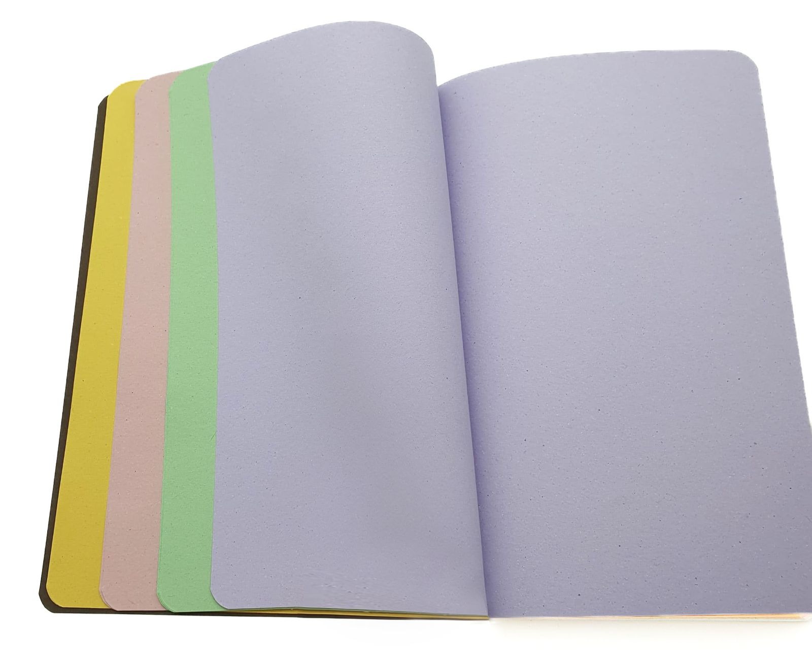 For sketches and notes. With mix of 4 different pastelcolors. Brown natural cardboard cover, rounded corners.