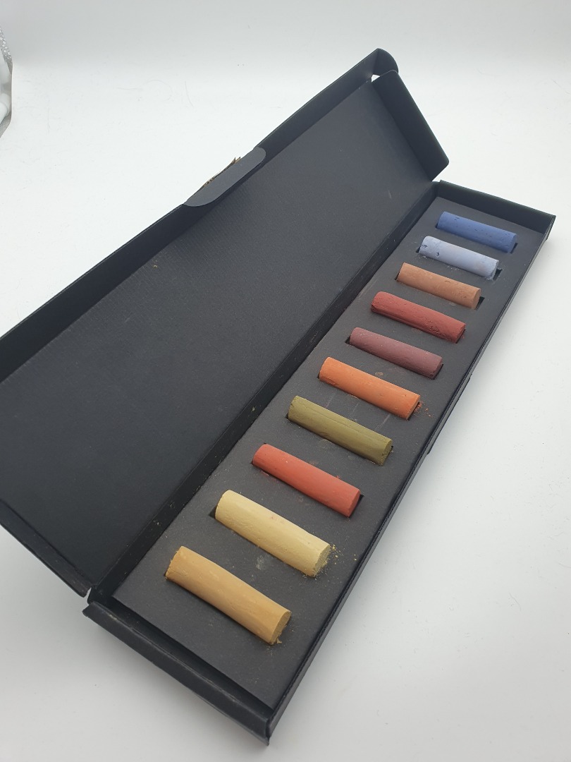The pastel crayons are used on thick paper, cardboard and other rough surfaces.