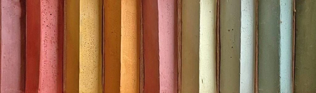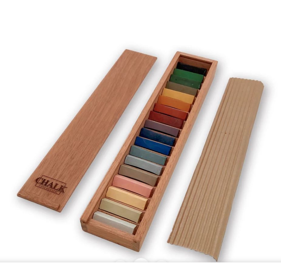 Chalk Copenhagen makes all oil pastels by hand, melts natural types of wax and mixes with pigments, iron oxides and organic oil from Stevns, where the brand is based. The hot mass is poured into molds and the finished oil pastels are picked up when they have cooled. There may be small deviations in the size and shape of the chalks.