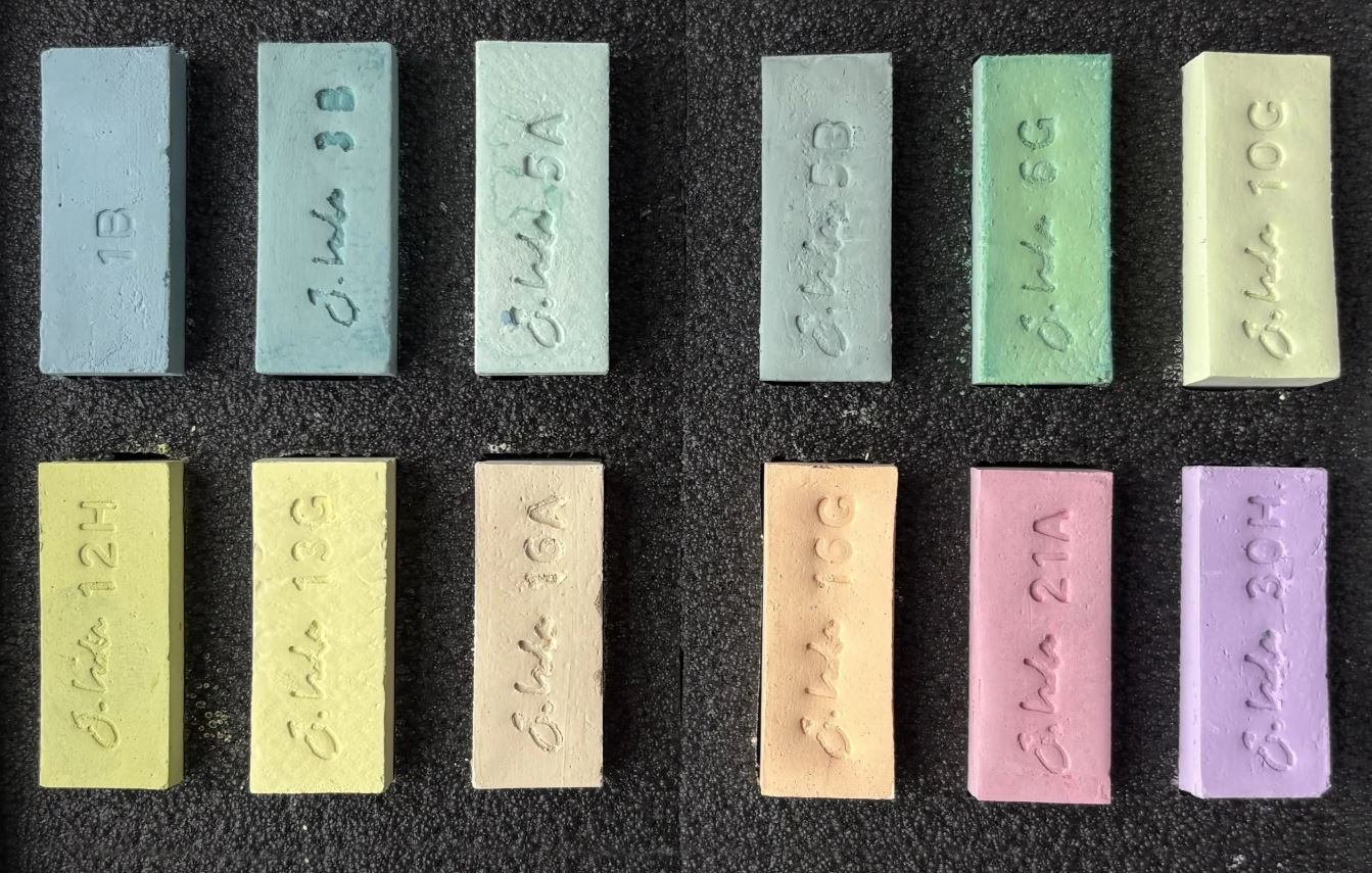 Due to the softness and our mixing process your colors have a guaranteed consistency and uniform pigment distribution throughout the handmade stick. Because of the creation process and the very little amount of binders, the pastel sticks must be handled carefully, they can break easily.