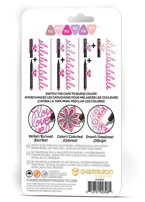 Chameleon Fineliners have a patented dual ink system, with ink in the pen and in the cap! To blend colours instantly, simply place the cap of one colour on another fineliner for a few seconds and the blending begins! Write, draw and colour like no other!