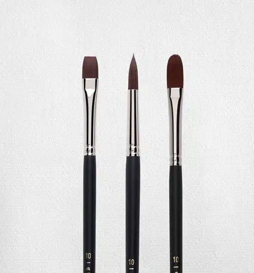 This top-quality set contains 3 long-handled brushes in the shapes round, flat and cat tongue, each size 10