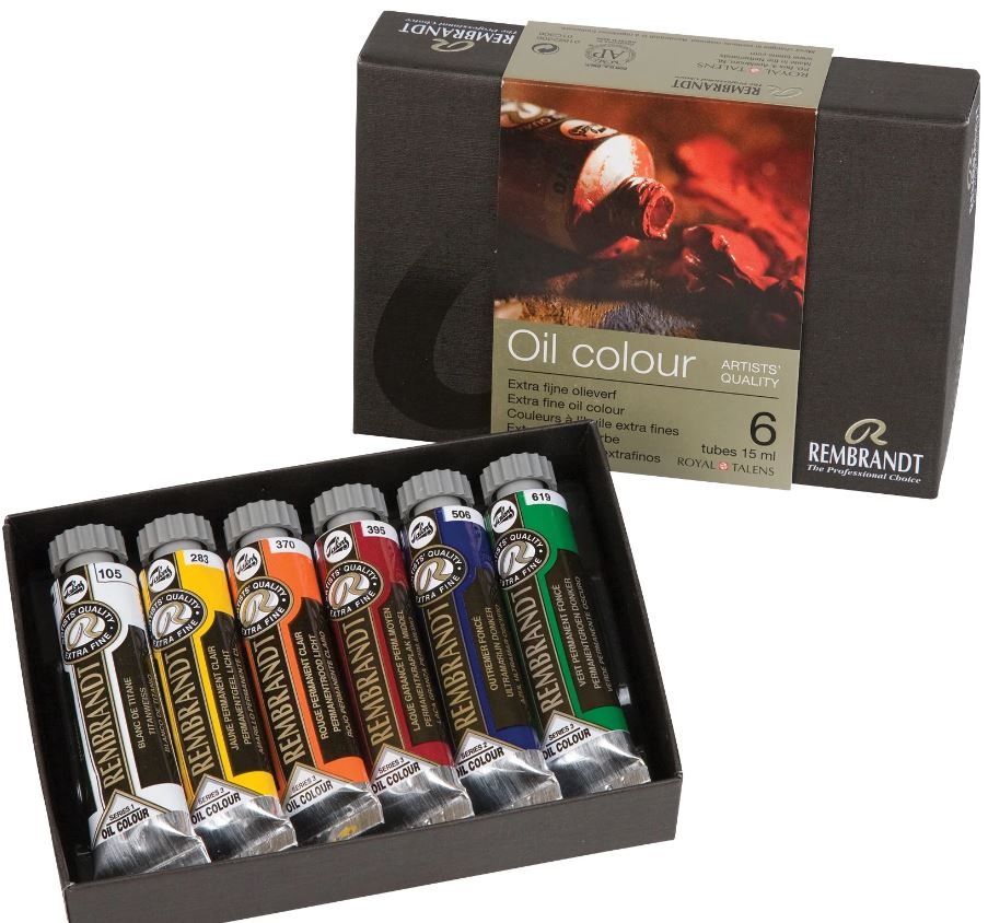 Inhoud van deze set Talens Rembrandt olieverf 6 x 15 ml in de kleuren: