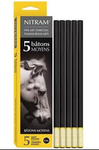 Deze kwaliteit Nitram Fine Arts houtskool is verkrijgbaar in de maten 6mm, 8mm en 12 mm.