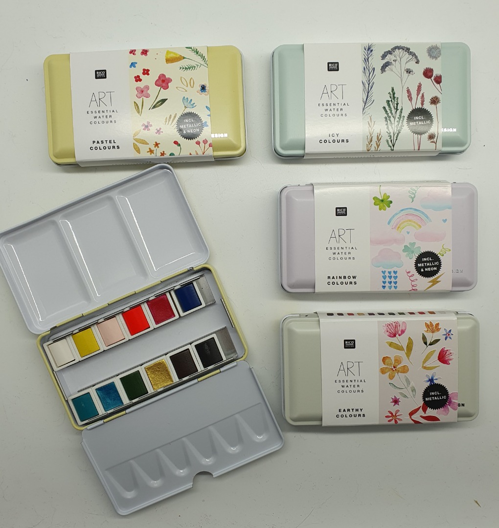 Rico Art Essential water colour colour box with 12 thematically matched colours, including metallic and neon