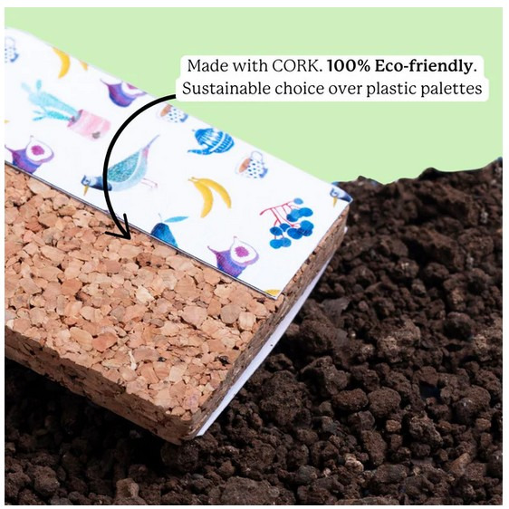 Deze aquarelverf zit niet in plastic napjes in een blik, maar rechtstreeks in een boxje, dat gemaakt is van recyclede wijnkurken. Dat is niet alleen milieuvriendelijk, het is ook nog eens praktisch. Want zo is je verf goed beschermd als je on-the-go werkt. Bovendien voelt het prettig aan en ziet het er ook nog eens goed uit!