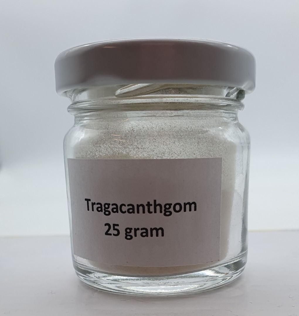 Tragacanthgom is een plantaardige gom die wordt geproduceerd uit het exsudaat van bepaalde peulvruchten (Astragalus tragacanta) die in het hele Midden-Oosten in het wild groeien. Het is stroperiger dan Arabische gom en gemakkelijk oplosbaar in koud water.